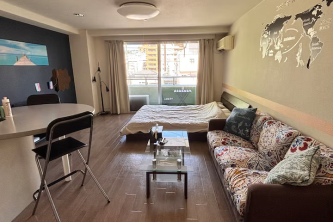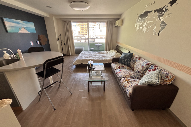 徳島駅から徒歩7分。徒歩3分圏内にローソン、ファミリーマート、郵便局があり、多くの飲食店、コインランドリー、繁華街までも徒歩5分と非常に便利な立地です。キッチンと調理器具がありますので簡単な料理を作る事も可能です。